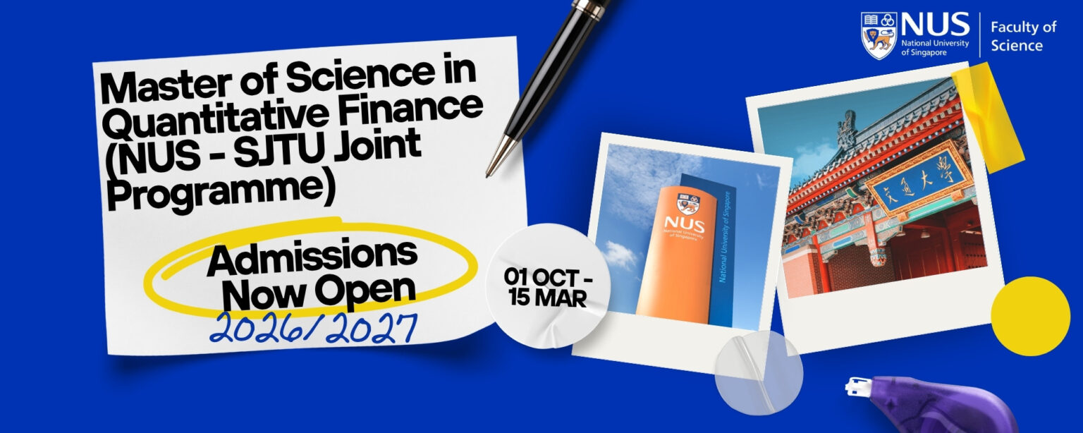 The MSc in Quantitative Finance degree will be awarded by NUS, and a certificate will be issued by SJTU.